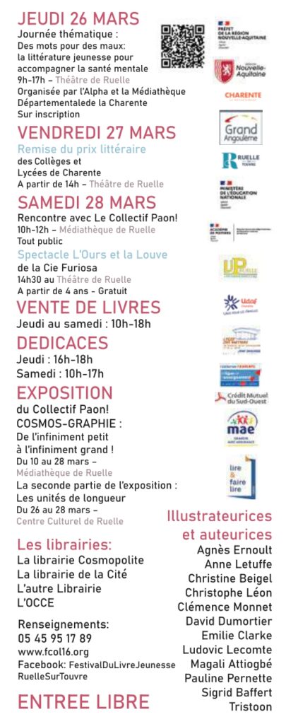 Ce Festival est organisé par la Ligue de l’Enseignement de la Charente, mouvement d’Education Populaire, également agréé en tant qu’organisme complémentaire de l’école. La volonté de l’association organisatrice est de fédérer autour de cet événement les médiateurs culturels des domaines de l’animation, de l’éducation, du livre et de l’image et le public.